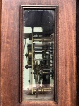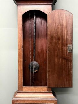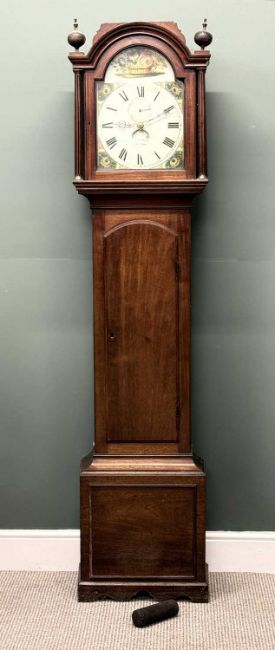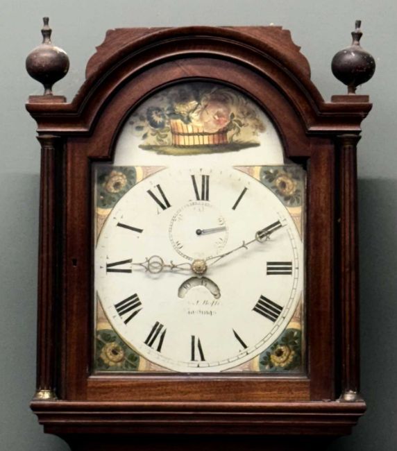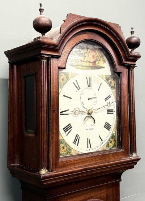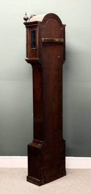 19TH CENTURY MAHOGANY LONGCASE CLOCK, arched painted dial signed 'Boffi, Hastings', subsidiary seconds dial and date arch, 30-hour movement, with single weight and pendulum, 206 (h) x 47 (w) x 24cms (d)Provenance: deceased estate Conwy