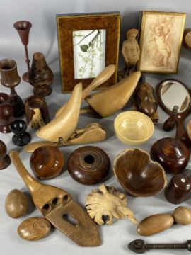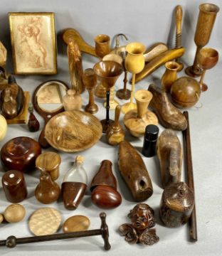 LARGE COLLECTION OF HAND-CRAFTED TREEN, including goblets, string holders, boxes, decorative ornaments, etc., various makers including Campbell (CWS Woodturning), Dewi Jones, and unnamedProvenance: private collection Ynys Môn