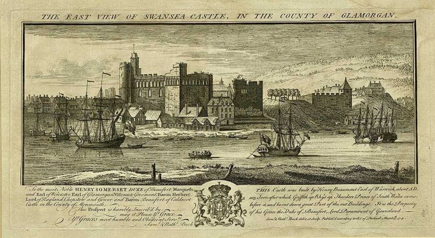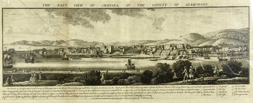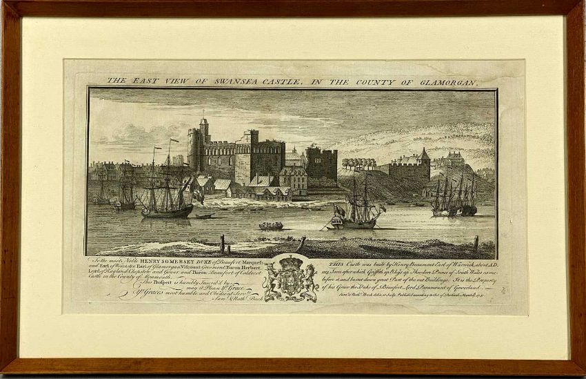 SOUTH WALES ENGRAVINGS: 'The East View of Swansea in the County of Glamorgan', Samuel and Nathaniel Buck, 1748, 43.5 x 84.5cms; 'North East View of Neath-Abbey', Samuel and Nathaniel Buck, 1741, 24 x 38.5cms; 'South-East View of Kydwelly-Castle', Samuel and Nathaniel Buck, 1740, 24.5 x 38.5cms; 'East View of Swansea Castle', Samuel and Nathaniel Buck, 1741, 21.5 x 39cms; and three othersProvenance: private collection Flintshire