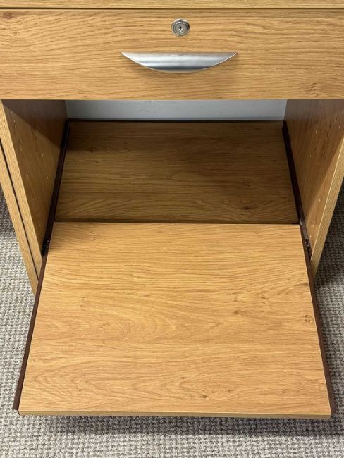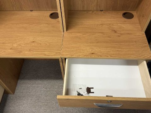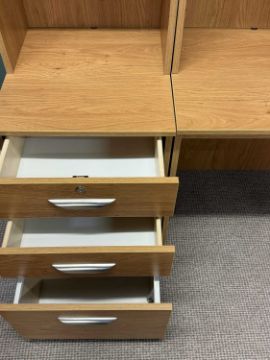 MODERN WOOD GRAIN OFFICE UNIT, incorporating bookcases and computer desk, overall 182 (h) x 169 (w) x 54cms (d)Provenance: private collection Gwynedd