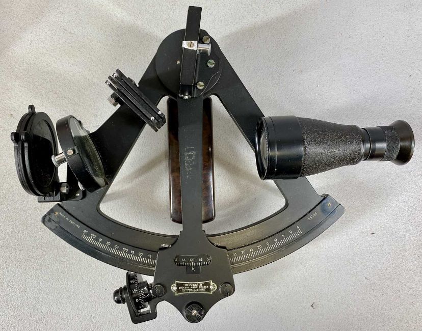 HEATH NAVIGATIONAL LONDON SEXTANT, black body with aluminium gauge, Hezzanith endless rapid reader automatic clamp, in box numbered 71419Provenance: private collection Flintshire