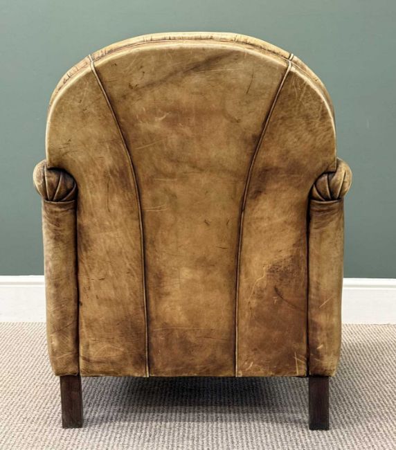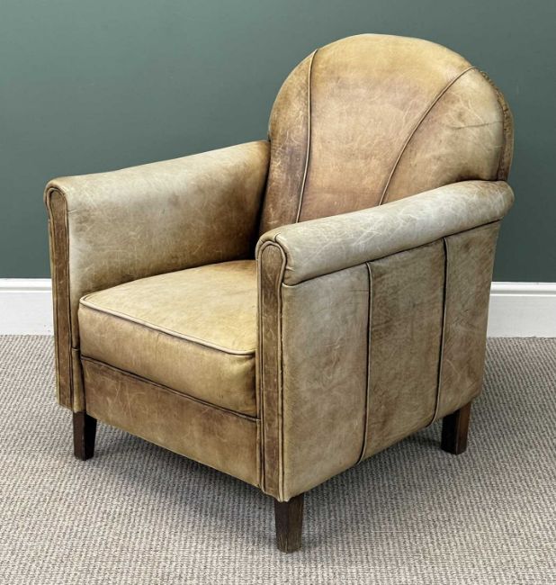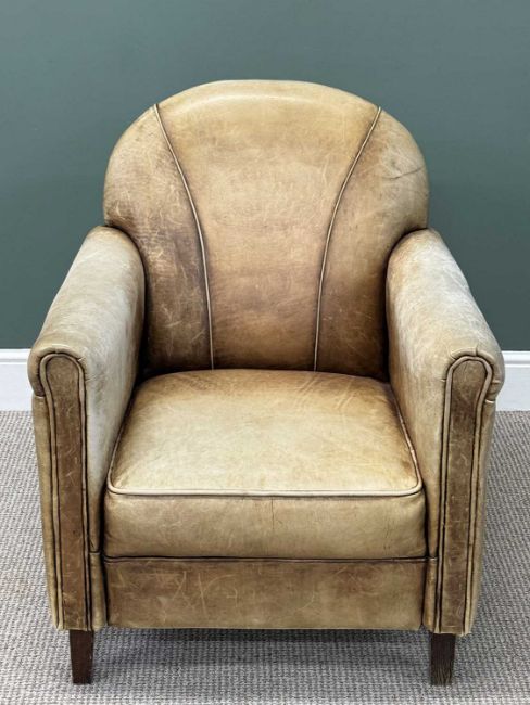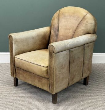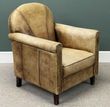 ART DECO STYLE BROWN HIDE UPHOLSTERED ARMCHAIR, 90 (h) x 74 (w) x 80cms (d)Provenance: private collection Conwy