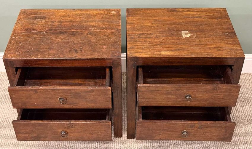 PAIR OF HARDWOOD TWO-DRAWER BESIDE CHESTS with ring handles, 63 (h) x 57 (w) x 43cms (d)Provenance: private collection Conwy