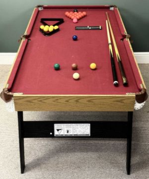 QUARTER SIZE POOL / SNOOKER TABLE, fold away design, 184 (l) x 92cms (w), with cues, balls, and accessoriesProvenance: deceased estate Conwy