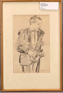 ‡ GLYN MORGAN (1926-2015) pencil on paper - man with a saxophone, signed and dated '55 lower right, 31.5 x 20cmsProvenance: private collection Conwy