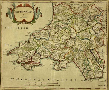 ROBERT MORDEN 18th century hand-coloured engraved map of South Wales, 35.5 x 43cmsProvenance: private collection FlintshireComments: framed and glazed