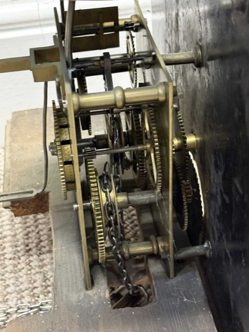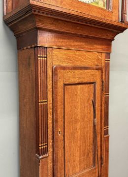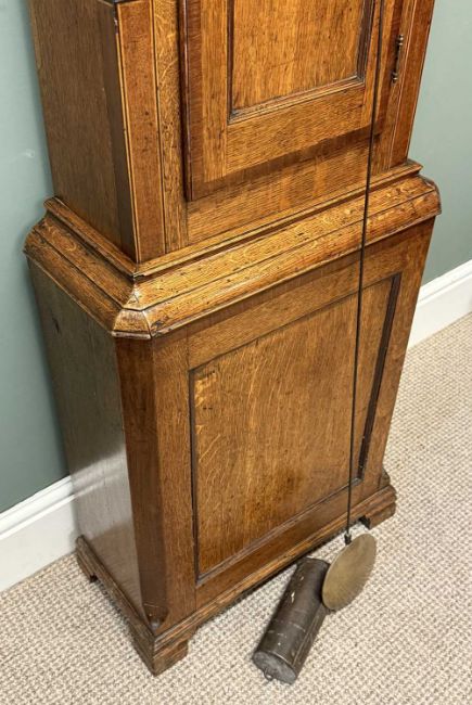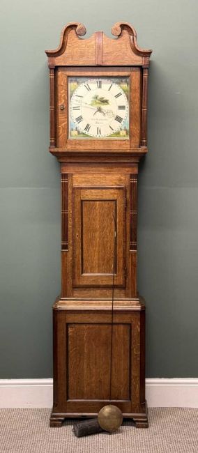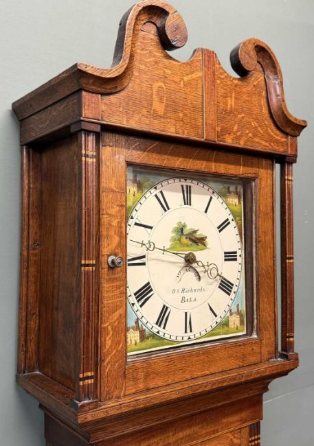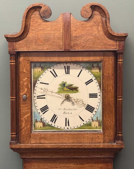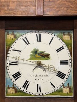OAK LONGCASE CLOCK, Richards of Bala, painted enamel dial with date arch, 30-hour movement, with pendulum and single weight, 203 (h) x 52 (w) x 25cms (d)Provenance: private collection Gwynedd