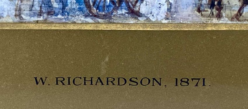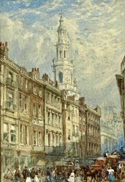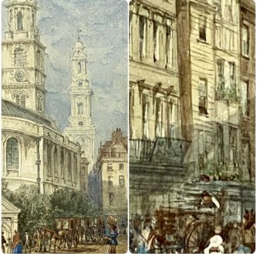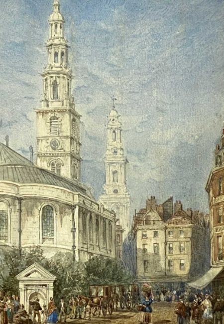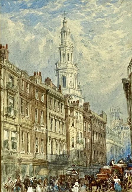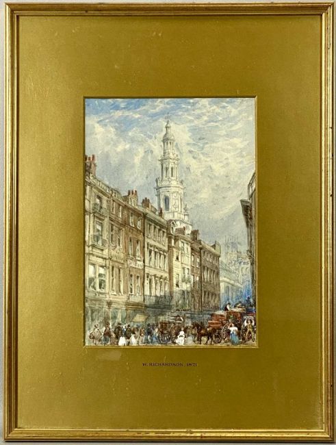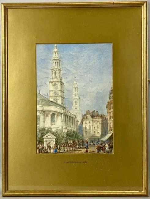 ‡ WILLIAM RICHARDSON (British 1814-1899) pair of watercolours - church towers from the street, unsigned, dated 1871 on the mounts, Boydell Galleries labels verso, 31.5 x 21.5cms (2)Provenance: private collection ConwyComments: framed and glazed
