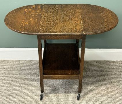 MIXED FURNITURE PARCEL, including a Victorian mahogany shield back hall chair, 92 (h) x 49 (w) x 42cms (d); oak drop-leaf two-tier tea trolley, 71 (h) x 44 (w) x 61cms (d); and a square oak centre table, 71 (h) x 41cms²Provenance: private collection Gwynedd