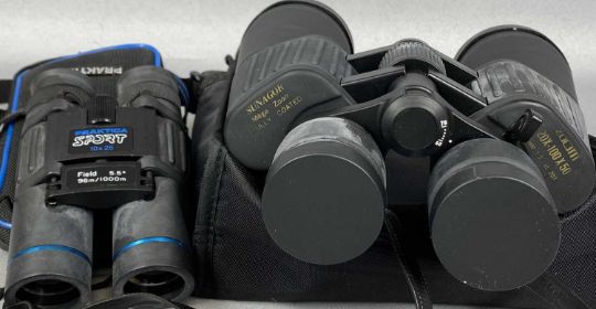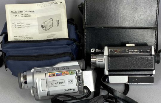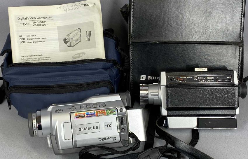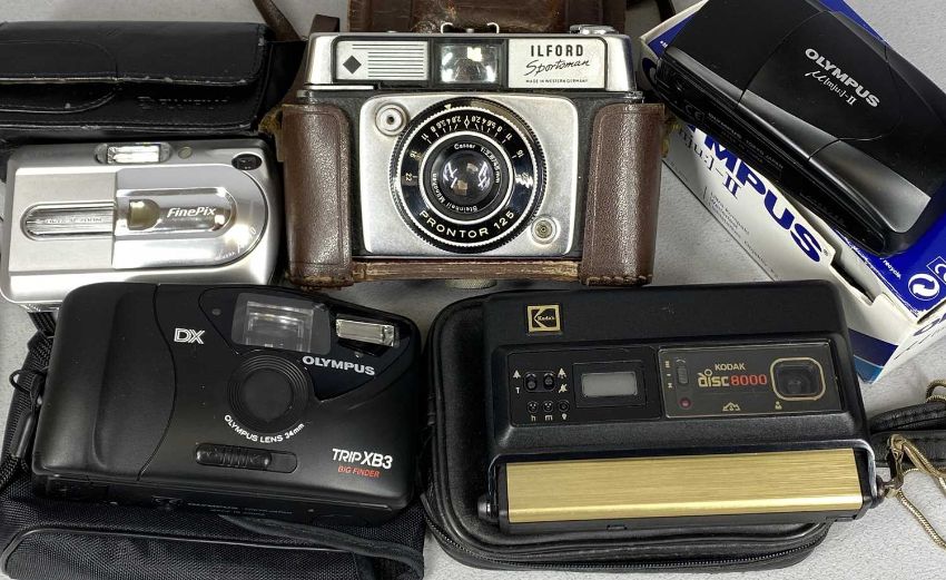 ASSORTED CAMERAS & ACCESSORIES, including Kodak Disc 8000, Sunagor 20x-100x50 binoculars in case, Steepletone mini stereo cassette player, Samsung camcorder, etc.Provenance: private collection Gwynedd