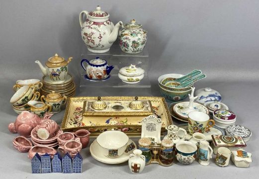 ASSORTED CERAMICS, including Chinese famille rose globular teapot and cover, 15cms (h); 19th century English porcelain desk stand, hand-painted with floral sprays, 30 x 18cms, etc.Provenance: private collection Conwy