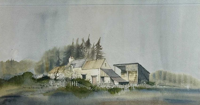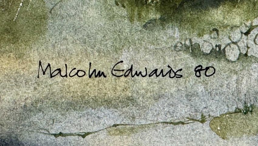 ‡ MALCOLM EDWARDS (Welsh, b. 1934) watercolour - entitled verso 'Plas Ucha, Cilcain, Clwyd', signed and dated '80 lower left, 26.6 x 49.5cmsProvenance: private collection ConwyComments: framed and glazed