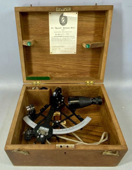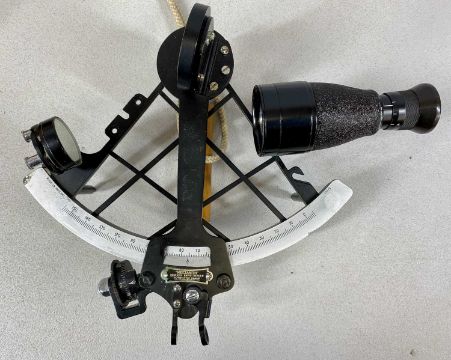 HEATH NAVIGATIONAL LONDON SEXTANT, black metal frame, Hezzanith endless rapid reader automatic clamp, boxed with accessoriesProvenance: private collection Flintshire