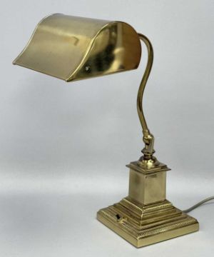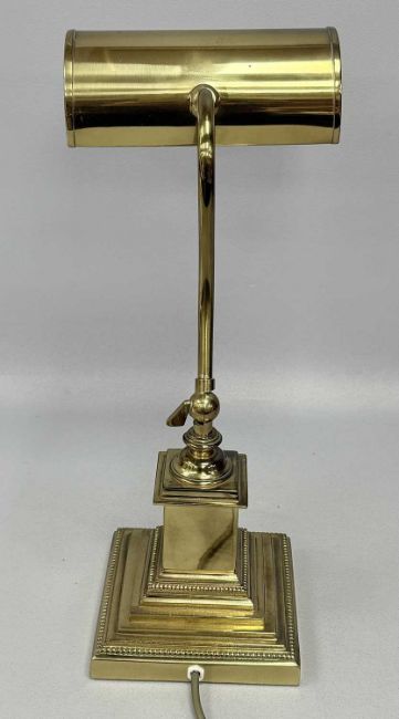 REPRODUCTION BRASS STUDENT'S DESK LAMP, with stepped base, adjustable swan neck column, 42cms (h)Provenance: private collection Shropshire