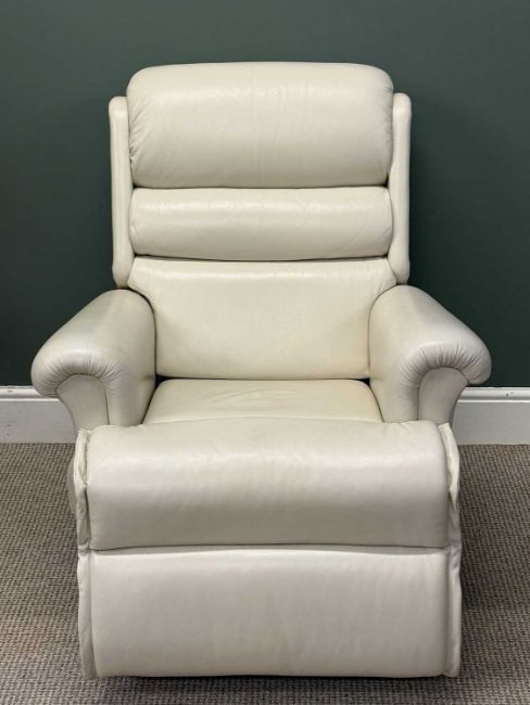 SHERBORNE CREAM LEATHER EFFECT RECLINING LOUNGE CHAIRProvenance: private collection Shropshire