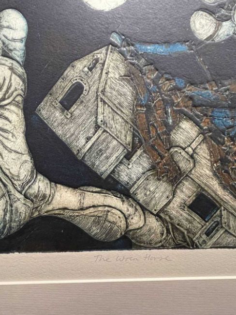 ‡ SEAN HARRIS (b. 1965) limited edition (31/40) coloured collagraph - entitled, 'The Wren Horse', signed and dated '03, 28 x 37cmsProvenance: private collection CardiffComments: framed, missing glass