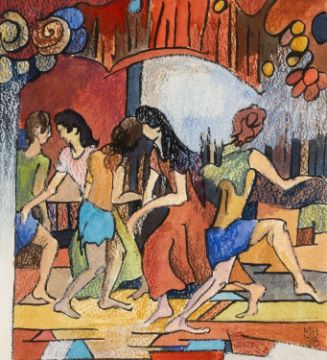 ‡ MARTIN HUMPHRIES (b.1951) pastel and ink on paper - untitled dancing figures, signed with initials, 23.5 x 22cmsProvenance: private collection CardiffComments: framed, glazed