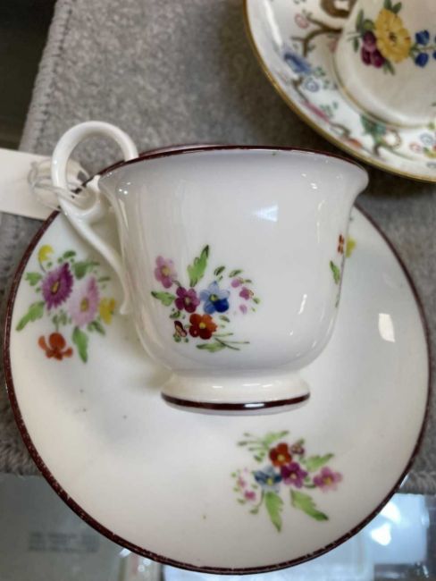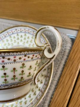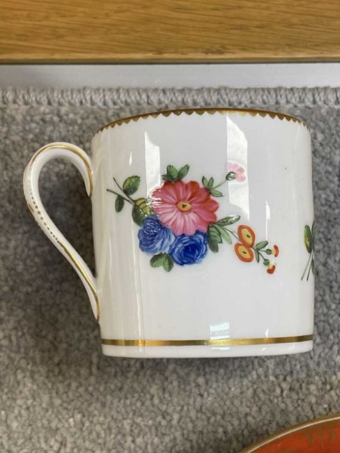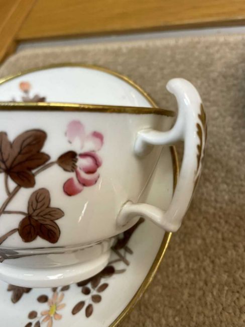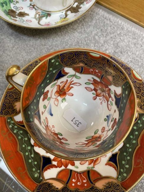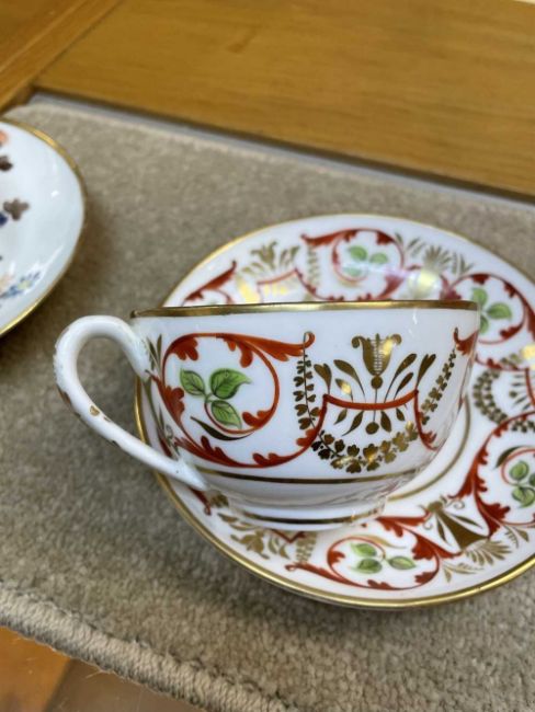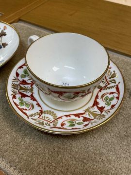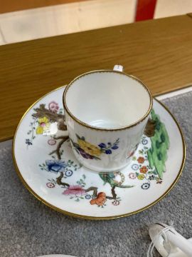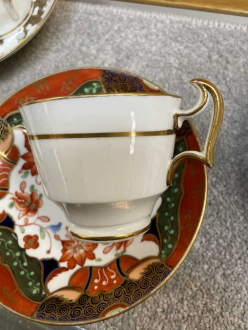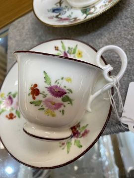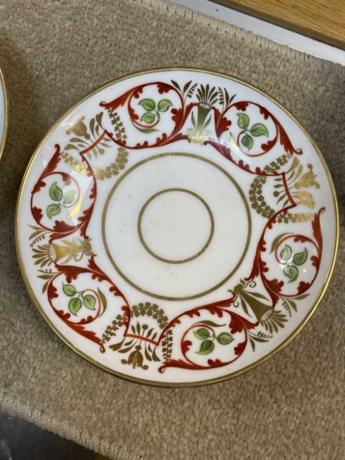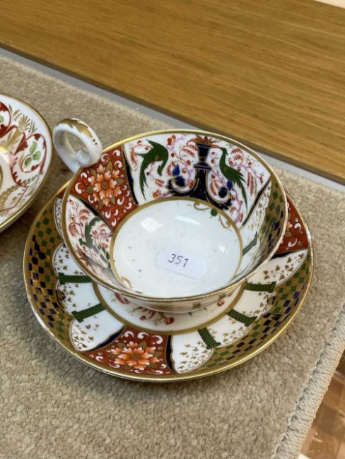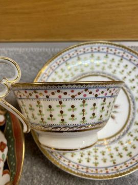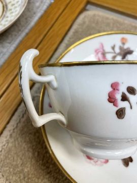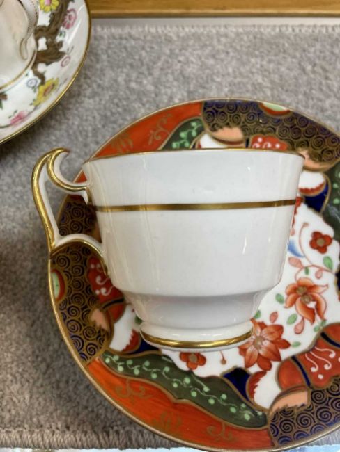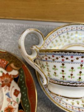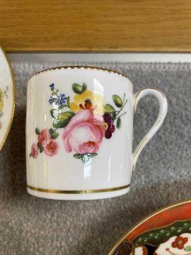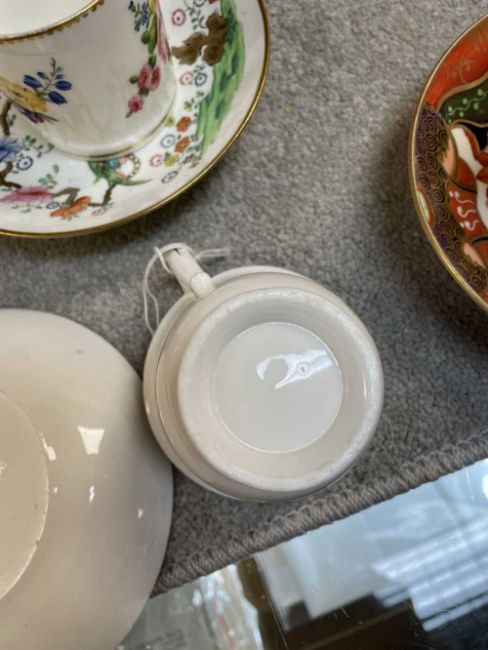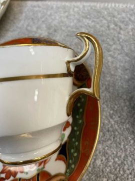 ASSORTED WELSH PORCELAIN CUPS & SAUCERS, circa 1813-1826, all Nantgarw or Swansea including set pattern 194 London shape coffee cup and saucer; Kingfisher pattern London shape teacup and saucer; wild rose sprig and floret border kidney-handled teacup and saucer; exotic bird Japan pattern kidney handled teacup and saucer; Derby pattern Bute shaped teacup and saucer; chocolate rim kidney handled coffee cup and saucer; chained parakeets saucer; and wildflower painted coffee canProvenance: private collection CarmarthenshireComments: all generally good, inspection advised