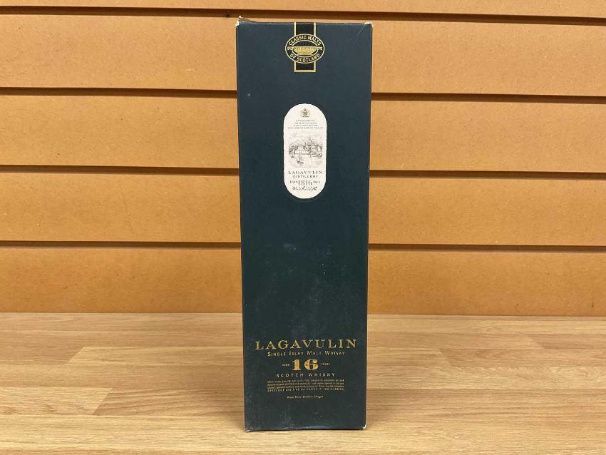 LATE 80'S/EARLY 90s EXPORT LITRE OF GLENMORANGIE 10YO, screwcap closure, 86º proof, tube tin lid reads 'purchased from an Allders International Shop Duty Free for exportation only, fill in-neck, excellent labels, tube very good, plus early 90's WHITE HORSE BOTTLING Classic Malt of Scotland Lagavulin 16yo, 43%, 70cl, boxed, fill high shoulder, storage wear and tear to box, labels excellent (2)Provenance: private collection PenarthComments: in description