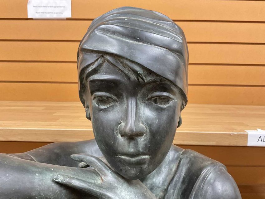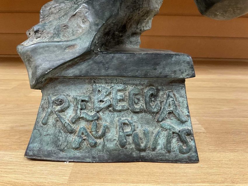 EMMANUEL VILLANIS SCULPTURE 'REBECCA AU PUITS', late 20th C., patinated bronze or copper alloy Art Deco style bust of young woman resting her chin on folded arms, 68cms (h)Provenance: private collection Vale of GlamorganComments: no signature or stamp/impression