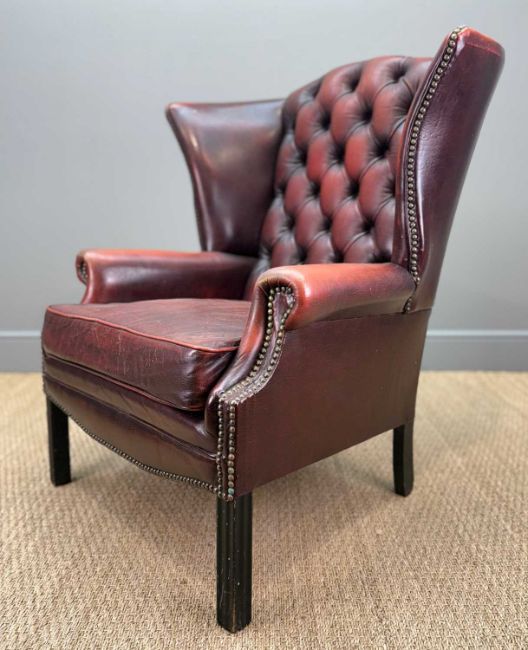 OXBLOOD LEATHER 19TH C. STYLE WINGBACK ARMCHAIR, 92 (h) x 88cms (w)Provenance: consigned via West WalesComments: good used condition with ordinary wear, inspection advised
