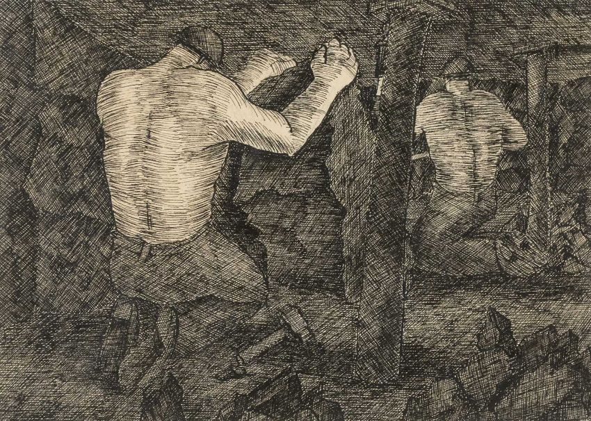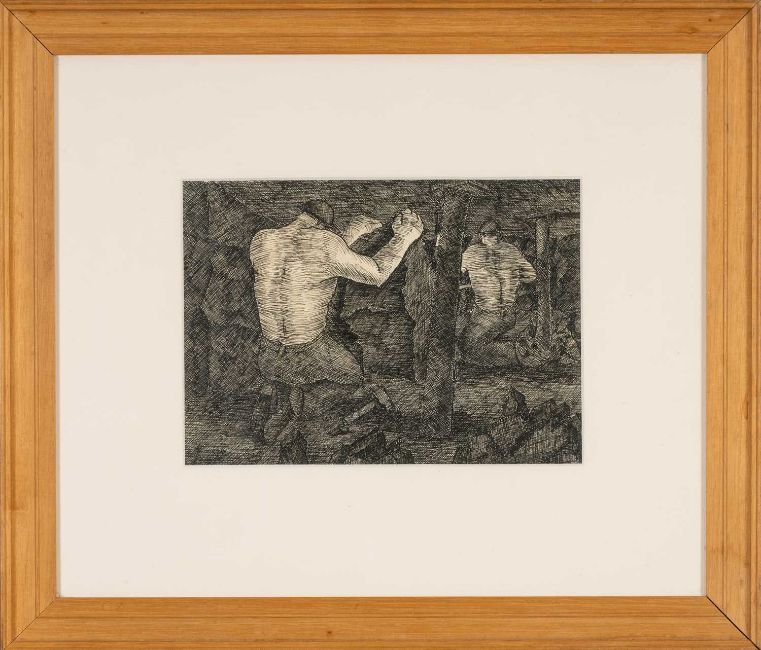 ‡ GEORGE BISSILL (1896-1973) pen and ink - entitled verso, 'Working on the Seam', unsigned, 17 x 24cmsAuctioneer's Note: George William Bissill studied at Nottingham School of Art, 1920-21. He worked as a coalminer for seven years and in 1922 as a pavement artist in London. Bissill's paintings are held in a number of important public collections, including the Tate Gallery, National Museum of Northern Ireland and the Manchester Art Gallery.Provenance: private collection CeredigionComments: framed, glazed