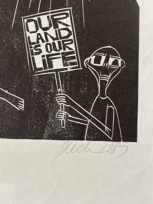 ‡ PAUL PETER PIECH (American, lived/worked Wales, 1920-1996) limited edition woodcut prints (4) - all four with the same theme about human rights, peace and activism, all signed and dated, two different sizes with the largest being 76 x 51cmsProvenance: private collection South WalesComments: all unframed, all with creasing, small tears and tape residue, one has a water mark, viewing recommended