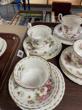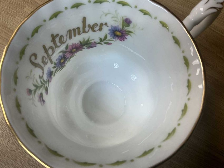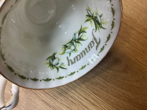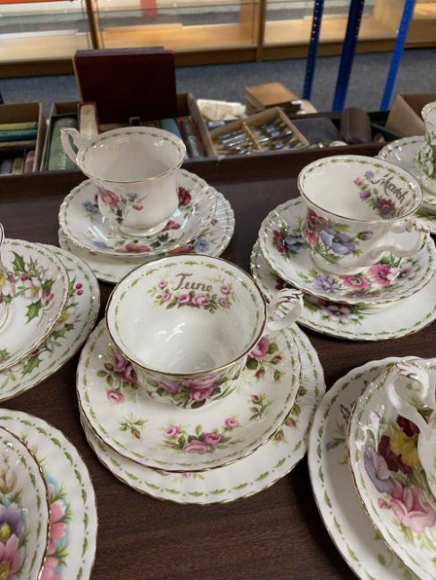 FULL SET OF 12 ROYAL ALBERT 'FLOWER OF THE MONTH' SERIES TRIOS, each decorated with a different flower in sprays with month title, printed marks, and including a milk jug (13)Provenance: private collection BridgendComments: all good condition except January and September cups which have fine hair line cracks
