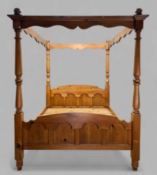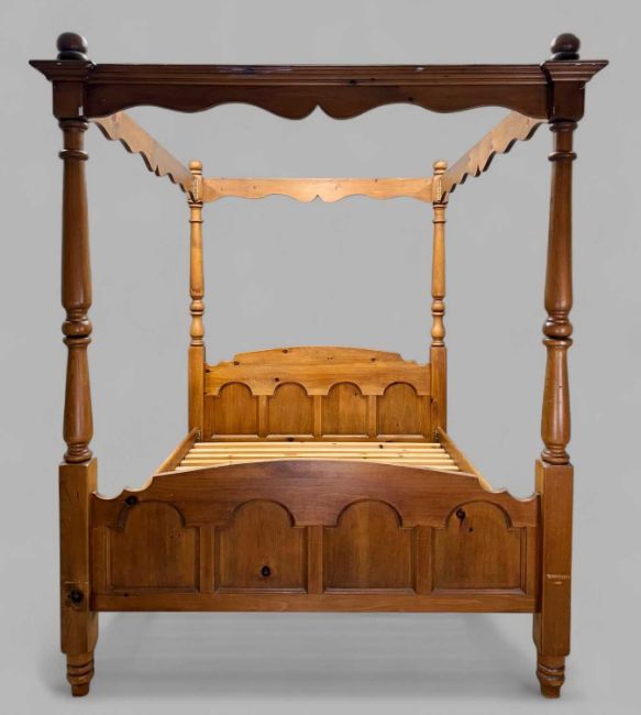 MODERN PINE FOUR POSTER BED FRAME, king size, 215 (h) x 165 (w) x 215cms (d)Provenance: consigned via West WalesComments: good used condition, some decorating paint drips, appears to be complete with all associated brackets however inspection advised