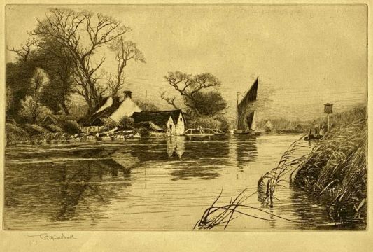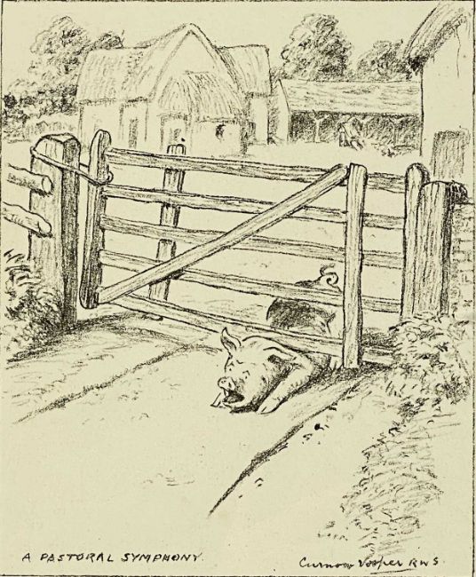 THREE VARIOUS BLACK & WHITE PRINTS, Curnow Vosper print - 'A Pastoral Symphony', 23.5 x 19cms; lake scene, 21 x 30cms; and Italianate scene with buildings and figures, 24.5 x 36.5cmsProvenance: private collection DenbighshireComments: all framed and glazed
