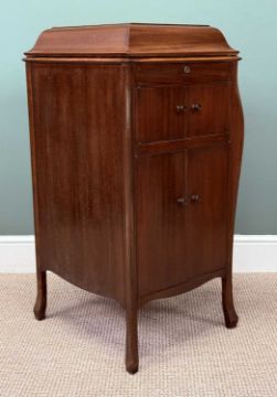 HMV GRAMOPHONE PLAYER, in mahogany free-standing cabinet, 100 (h) x 46 (w) x 52cms (d); and small quantity of gramophone recordsProvenance: private collection Flintshire