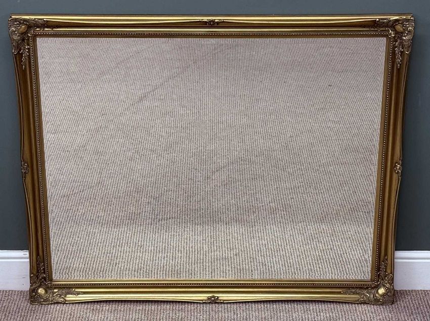 LARGE RECTANGULAR GILT FRAMED WALL MIRROR, with bevelled plate, 130 (h) x 106 (w) x 5cms (d)Provenance: private collection Conwy