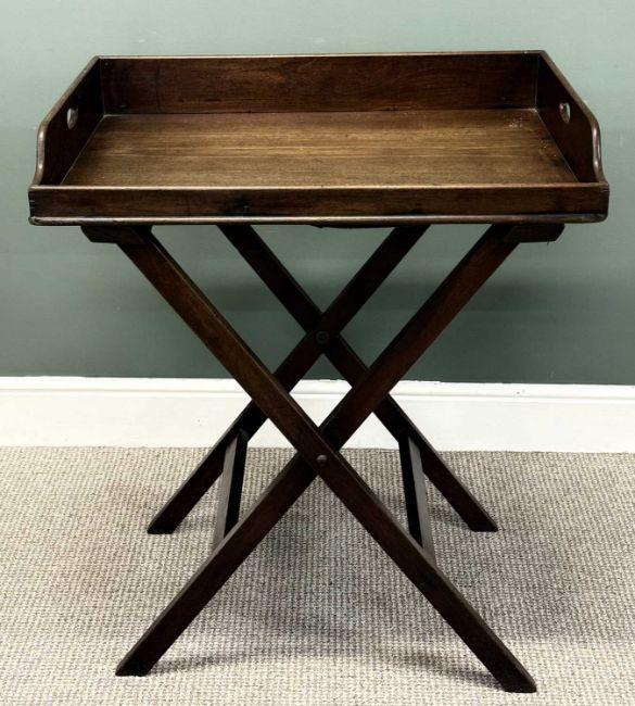 19TH CENTURY MAHOGANY BUTLER'S TRAY, on folding stand, 90 (h) x 75 (w) x 53cms (d)Provenance: deceased estate Ynys Môn