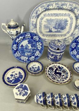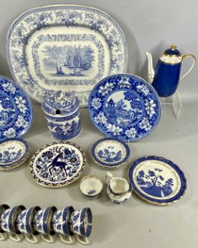 ASSORTED CERAMICS, including Booths 'Real Old Willow' pattern coffee service, 18 pieces; Spode Regent pattern coffee pot; Florentine china transfer decorated oval blue and white meat plate, etc.Provenance: private collection Shropshire
