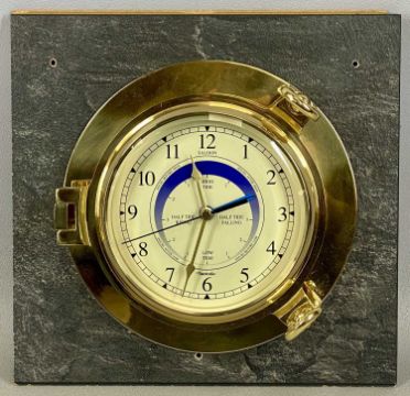 NAUTICALIA BULKHEAD TYPE SHIP'S CLOCK & BAROMETER, each 23cms (diam.); with a Hermle reproduction mahogany cased dome top mantel clock, 21cms (h)Provenance: private collection Conwy
