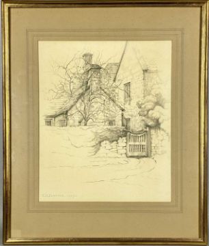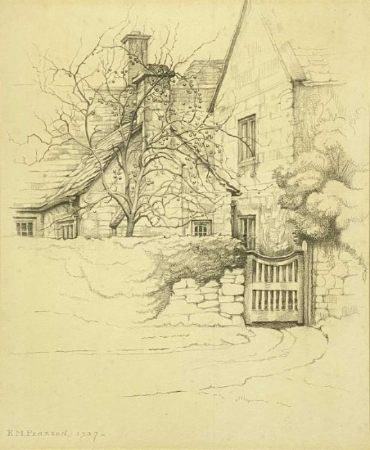‡ KATHLEEN MARGARET PEARSON (1898-1961) pencil sketch - gateway to house, signed and dated lower left, 37 x 31cmsProvenance: private collection Conwy