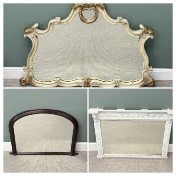 THREE WALL MIRRORS, arched painted frame with gilded highlights, 110 (h) x 152 (w) x 5cms; rectangular whit painted frame with moulded detail, 80 (h) x 111 (w) x 14cms (d); and reproduction arched overmantel, 72 (h) x 102 (w) x 6cms (d)Provenance: private collection Conwy