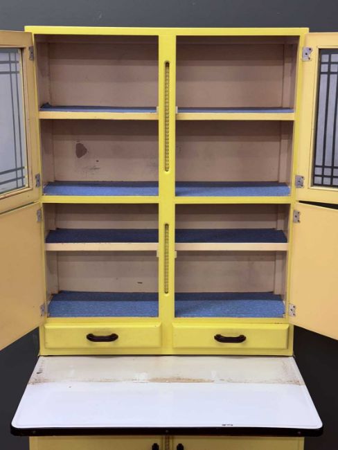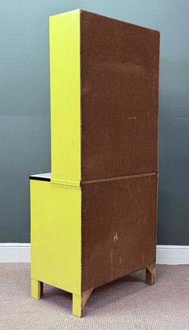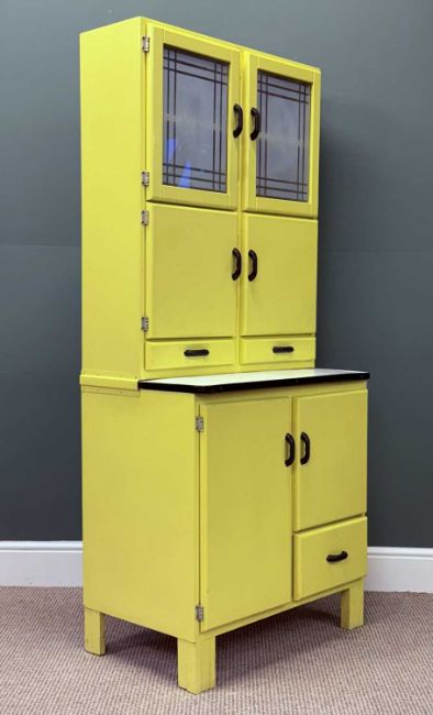 1950s KITCHEN LARDER UNIT, painted yellow, upper section with glazed doors, white enamel work surface, 178 (h) x 78 (w) x 52cms (d)Provenance: private collection Flintshire