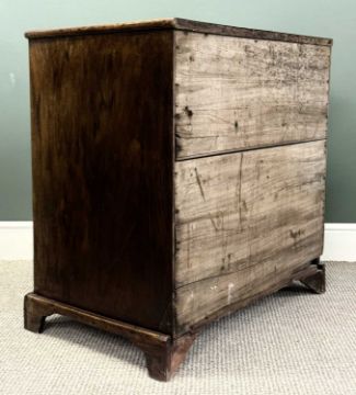19TH CENTURY OAK CHEST OF THREE LONG DRAWERS, brass drop handles, back plates and escutcheons, bracket feet, 86 (h) x 84 (w) x 55cms (d)Provenance: private collection Denbighshire