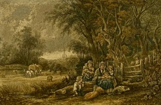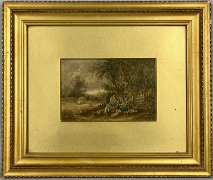 BAXTER (19th century) print - young lady picking flowers, 15 x 10cms; LE BLOND print - 'The Grape Harvest', 15 x 10.5cms; and another similar print - harvest, 9.5 x 14cms (3)Provenance: private collection Ynys MônComments: framed and glazed