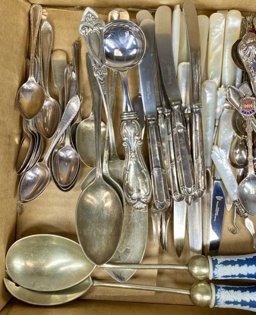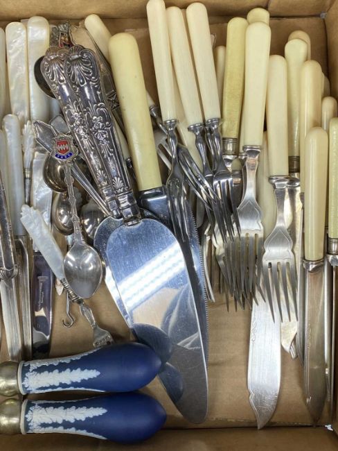GEORGE JENSEN SALAD SERVERS also Wedgwood Jasperware examples and an assortment of other flatwareProvenance: private collection Ynys Môn