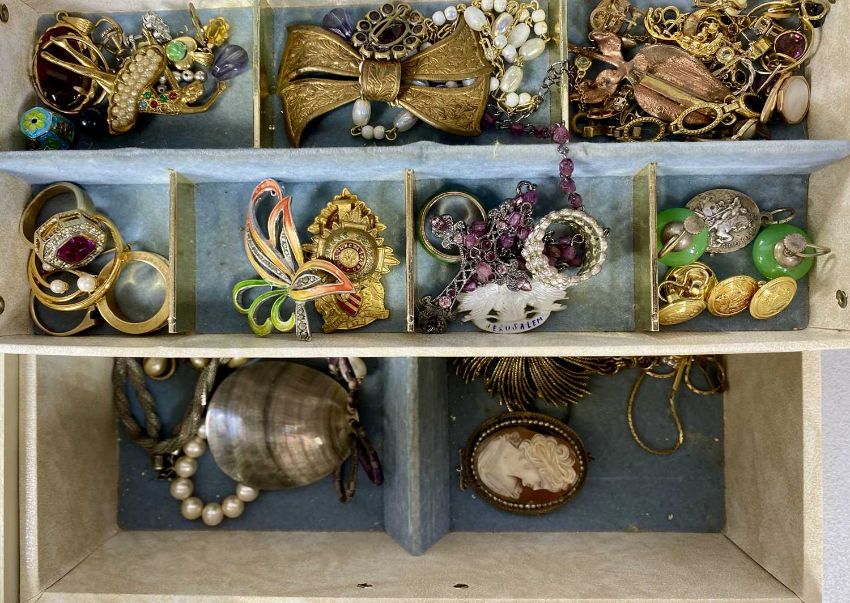 COSTUME JEWELLERY, including simulated pearls, various brooches, bead necklaces, etc.Provenance: private collection Denbighshire