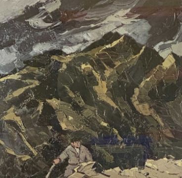 ‡ SIR KYFFIN WILLIAMS RA (1918-2006) limited edition print (235/250) - a farmer with stick and Snowdon to the background, signed in pencil, 62 x 62cmsProvenance: private collection Ynys MônComments: framed and glazed