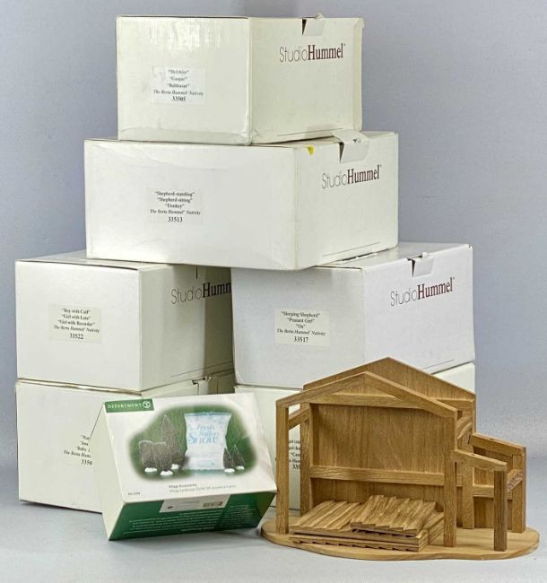 STUDIO HUMMEL NATIVITY SCENE, to include eighteen boxed figures/models, wooden building, etc.Provenance: private collection Conwy