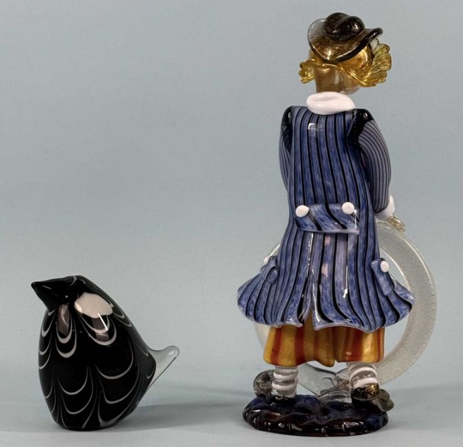 GLASSWARE, comprising Murano clown, 30cms (h); boxed Gleneagles crystal fruit bowl, 23cms (diam.); and black and white bird, 11cms (h)Provenance: private collection Merseyside