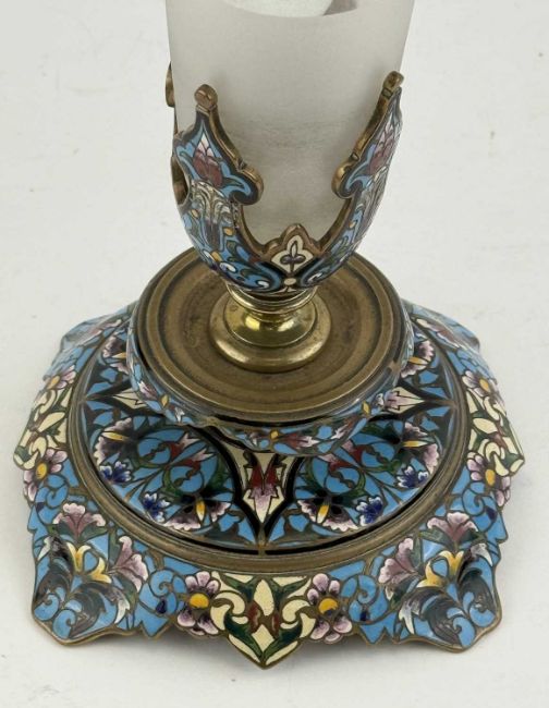FRENCH CHAMPLEVÉ ENAMEL & WHEEL ENGRAVED TRUMPET VASE, c. 1880, 35.5cms (h)Provenance: private collection Flintshire