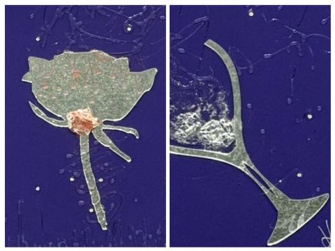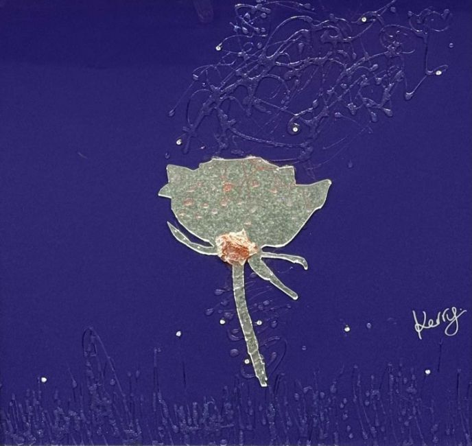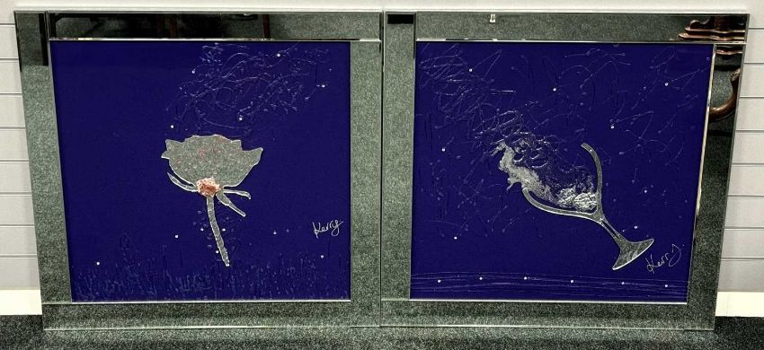 TWO CONTEMPORARY MIRROR PICTURES - flower and wine glass, signed 'Kerry', 96cms²Provenance: private collection CheshireComments: framed