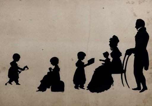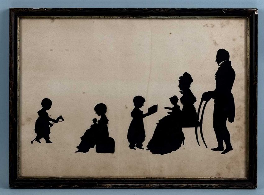 GEORGIAN SILHOUETTE PICTURE - Lawrence family, inscribed verso with names of sitters and dates, 29 x 41cmsProvenance: private collection DenbighshireComments: framed and glazed