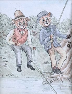 AFTER LOUIS WAIN watercolour, pen and ink - 'An Unexpected Catch', bearing a signature, 25 x 20cmsProvenance: private collection Cheshire