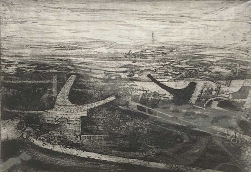 GEOFF YEOMANS (1934-2021) etching - 'Homage to Paul Nash', signed and dated 2006, 39 x 43cms